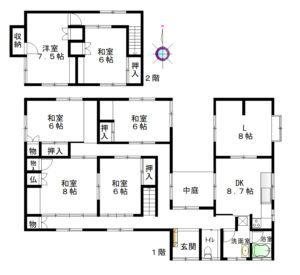 橿原市新口町 一戸建て 土地68.13坪 昭和52年2月築 6LDK